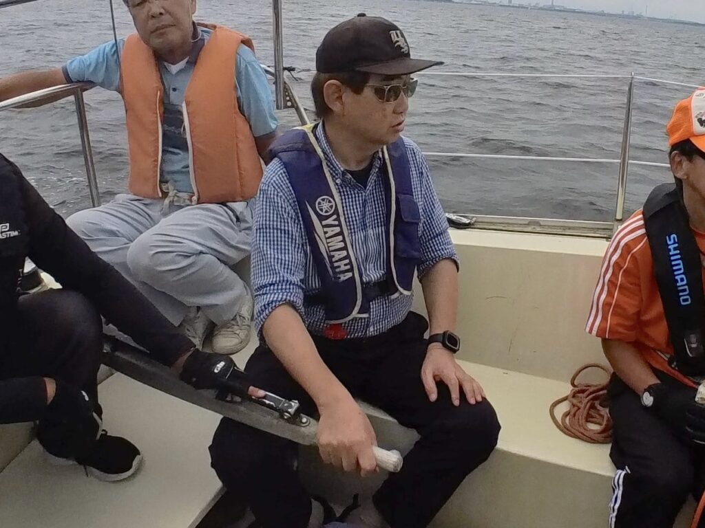 本編に戻り、新木場の朝は曇り空で風は少々。駅に集合は、とのがいちさん、そえださん、水田さん、大田区の体験者さん私になります。シャトルバスにてマリーナに向かいます。と、そこで目の前を横切る男性! そうです。干物屋さんのスタッフの方です。『今日もお待ちしてます。』と明るい笑顔。今晩も干物屋さん決定。お世話になります。