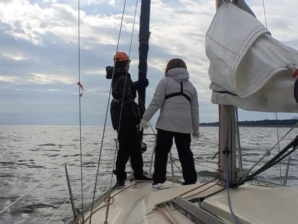 3名のゲストを招いての活動となりました。工藤さんはベテランセイラーで、浜名湖や三河湾で幅広く活動されています。玉木さんと天池さんは2回目の体験で、富士マリーナデビューです。