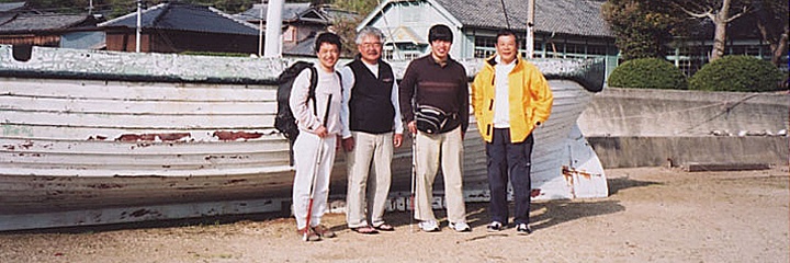 引田では、予め私たちは宿を取っていなかったので、先ずは宿探しです。港で網を片付けていた漁師さんに、近くに宿はないかと聞くと、引田にはないよ、との返事。私たちは、それでは今日は船の中で寝袋を敷いての宿泊になるかと思い、船室の中を片付け始めたところ、竹内さんが、先に温泉に行こうと提案。そして、 私たちはお父さんに教えてもらった通りの道を歩いて翼山温泉に行きました。途中、お遍路参りの札所があり、帰りにお参りをしようと話ながら、歩くこと30 分、市の社会福祉施設にもなっている温泉に着きました。そこで、竹内さんが機転を利かせ、受付のおじさんに宿泊できるところはないか尋ねました。すると、 おじさんは、私たちが風呂に入っている間に調べてくれて、引田の隣町の白鳥町というところにある旅館を紹介してくれました。お陰で私たちは、温泉で汗を流 すことも出来、宿でゆっくり休むことが出来ました。宿では、温泉帰りに酒屋で調達して来たこの土地の日本酒で、お疲れさんの乾杯。こうして回航2日目が終わりました。