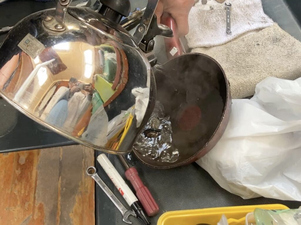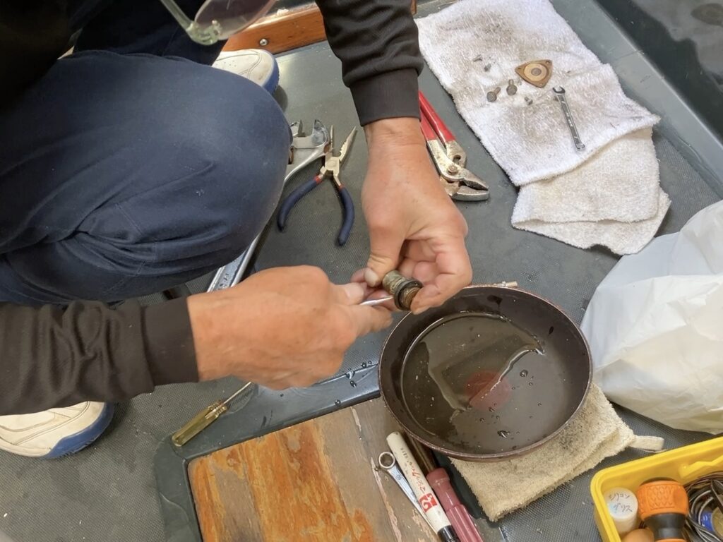 エンジンと対面し「インペラで治ればもうけものですね」と仰る玉木さんに、全てを任せ、見守ること1時間半。