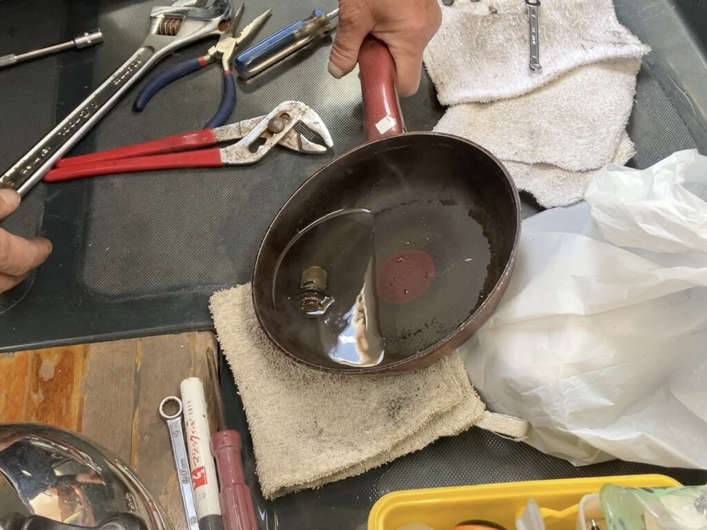 それと、やはり、塩と汚れがついていました。これが原因でスプリングと弁の部分がうまく稼働していないのではないかということで、熱湯で洗うことにしました。