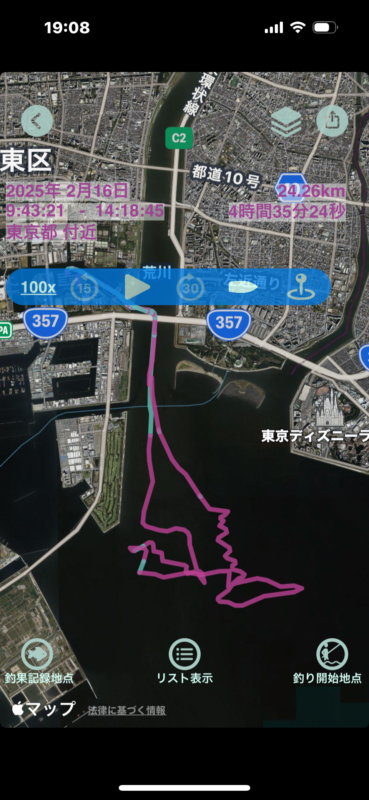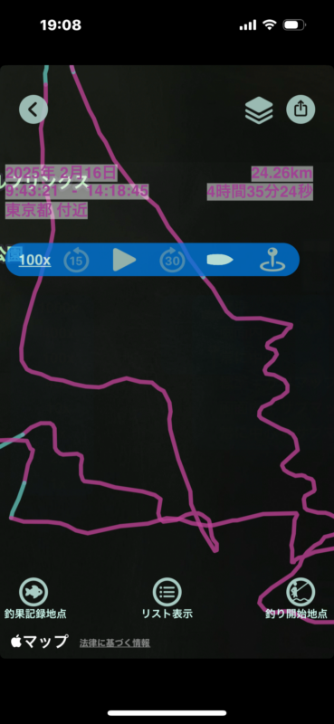 航行情報:距離: 24.26 km 所要時間: 4時間35分
