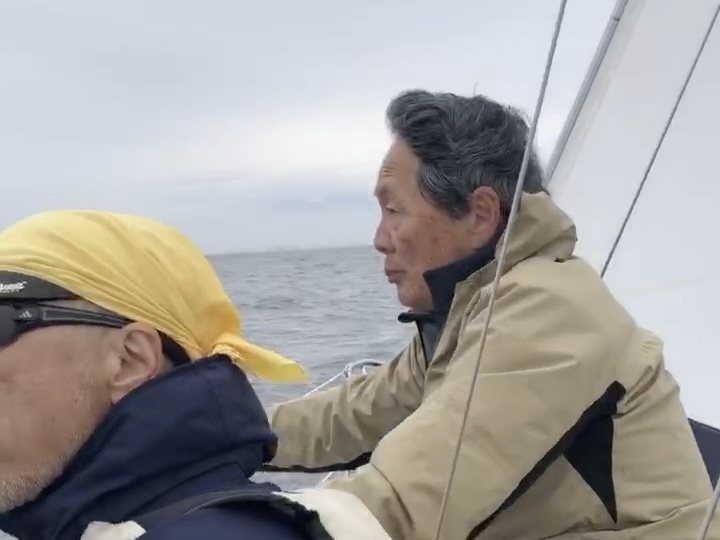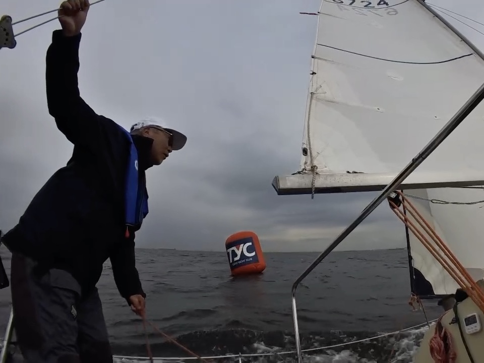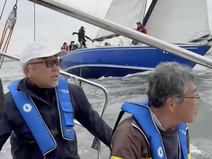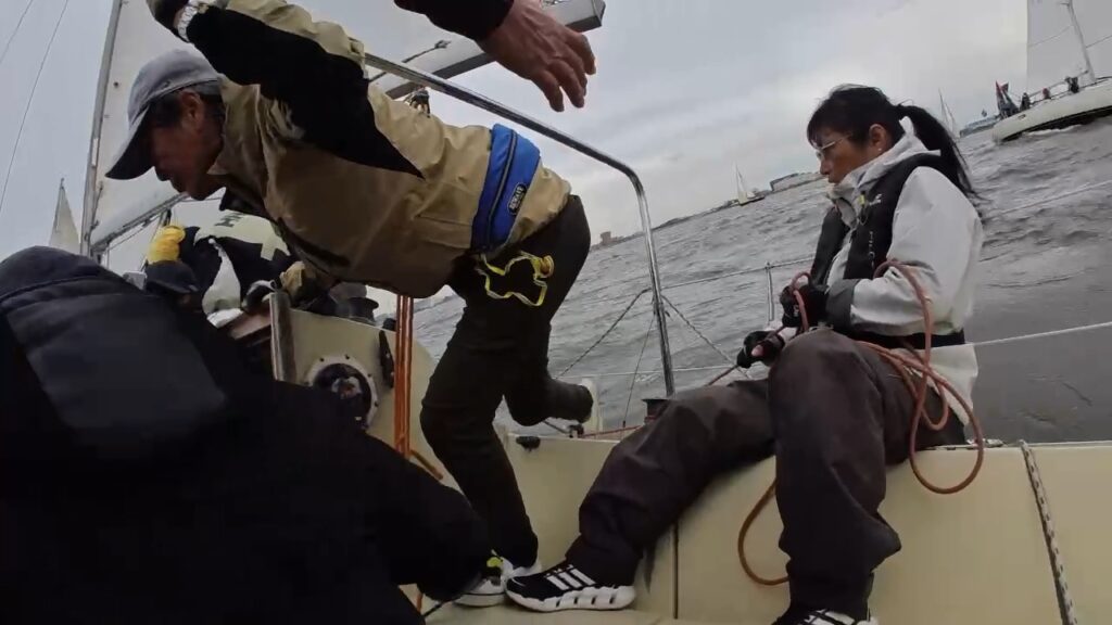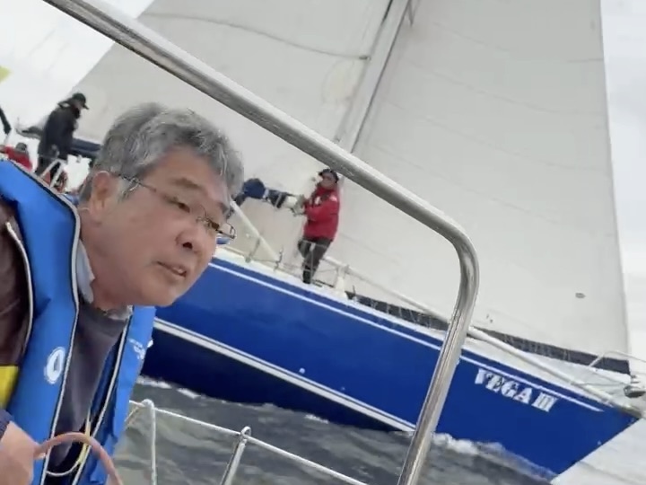 つい数年前までは、ジブセールのタックにしわがはいったらのぼりすぎとかまで見えていたのに、いまや、せまいコックピットで他のクルーのおしりが目の前にあっても、頭の中で映像をつくっていて、遠くに本線がいて、そこを目指している映像が妄想で見えている状態。