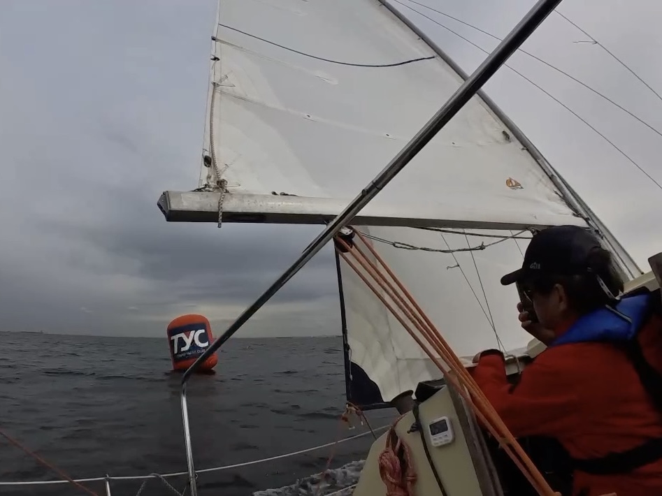 しかし、本部艇からのゴールしたことを告げるフォグフォーンは鳴らない。みな、スピンがばたつく音で聞こえなかったのだろうと思い込むことにしたものの、セールダウンして落ち着いて考えてみると、次にフィニッシュしたヨットに対しては、はっきりとなっており、フライングスタートしたため戻って再スタートしたものの、まさかリコールが解消されていなかったのではないかということに、打ちひしがれる。
