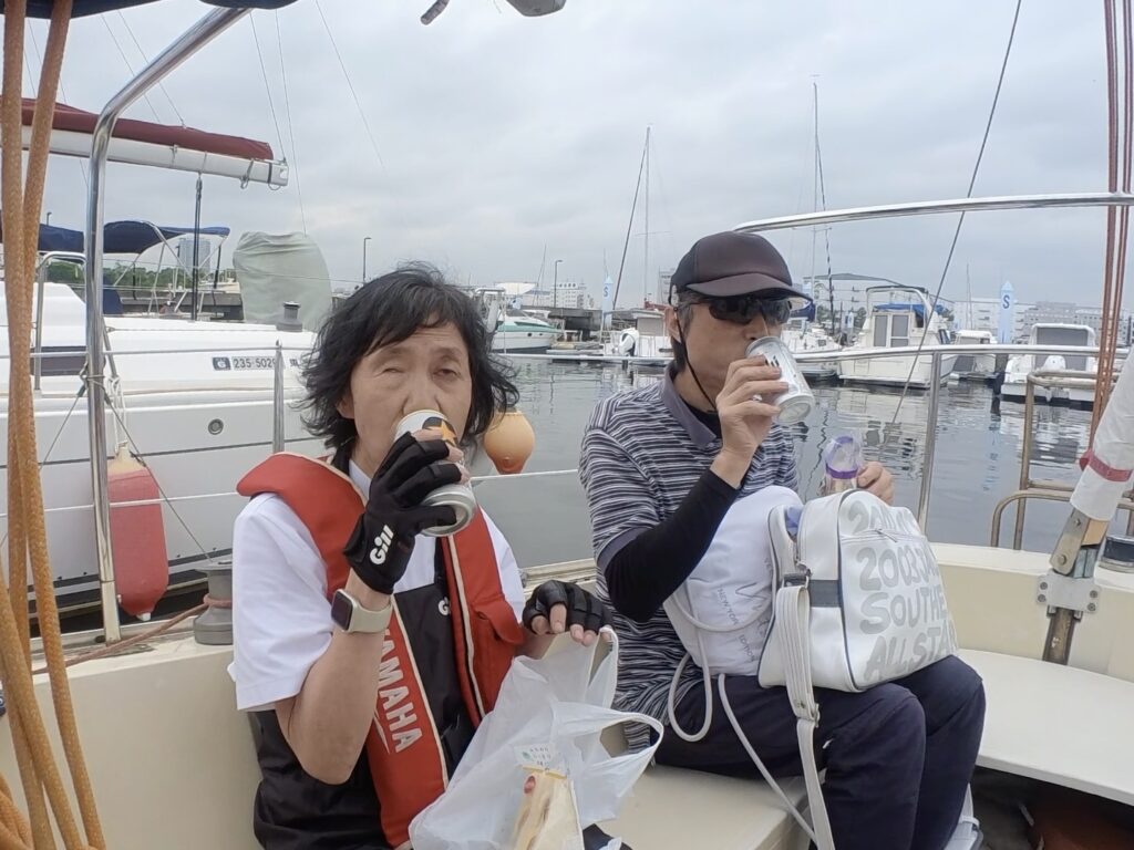 早めのTバース到着。皆さんゆっくり昼食と大人の飲料栄養補給されてました。お疲れ様でした。体験者さんもティラーを握ることができなかったのですが、大迫力の東京湾を味わっていただきました。ありがとうございます。