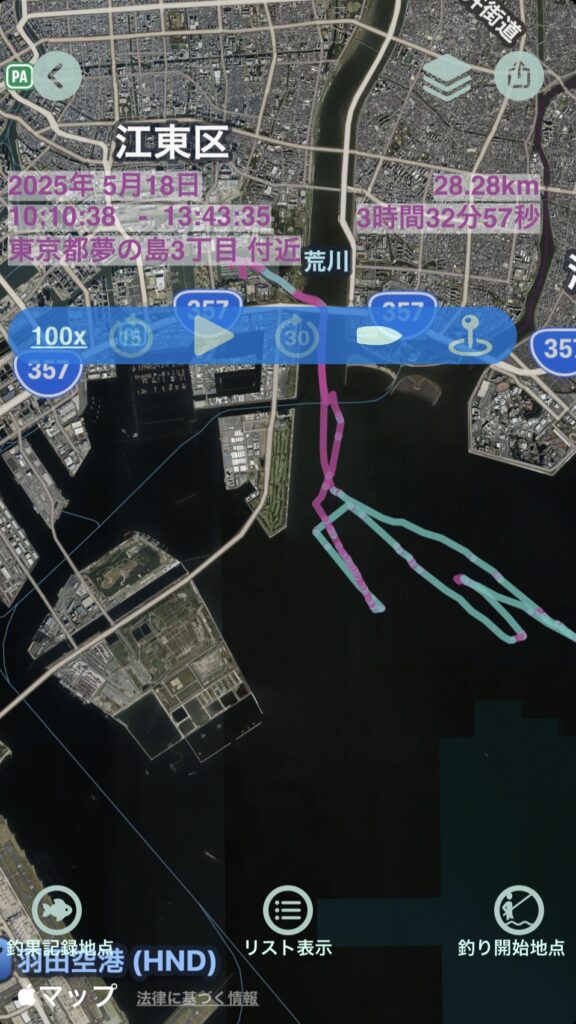 荒川河口、今日もうねりが高く風も吹いています。陸橋潜ると、波の高さ0.7メートル風速6メートル。なので、スプレー覚悟です。