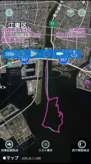 航行情報:移動距離:21.45km、所要時間:4時間41分