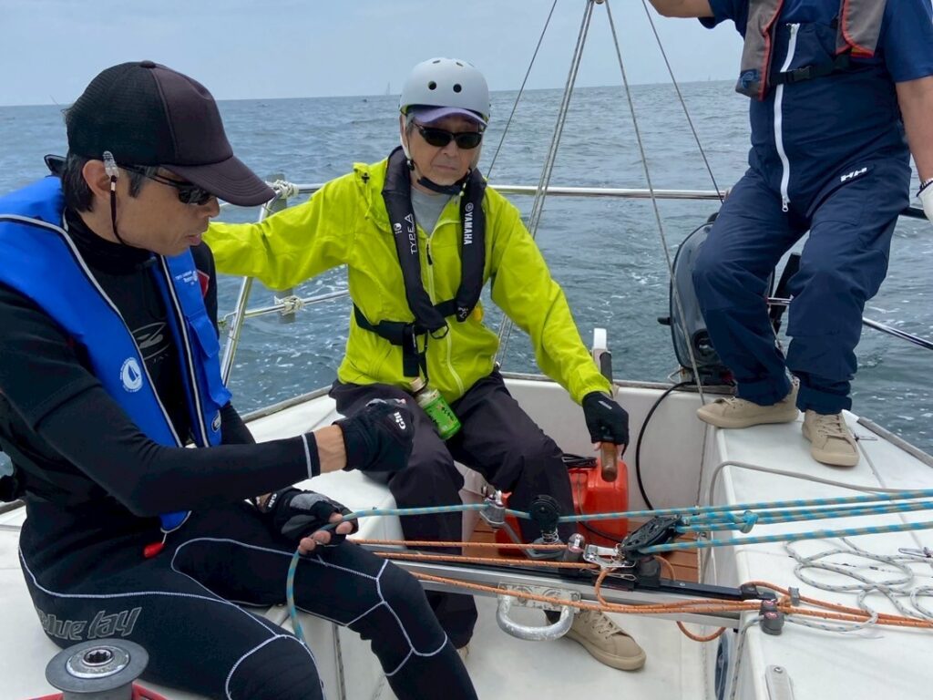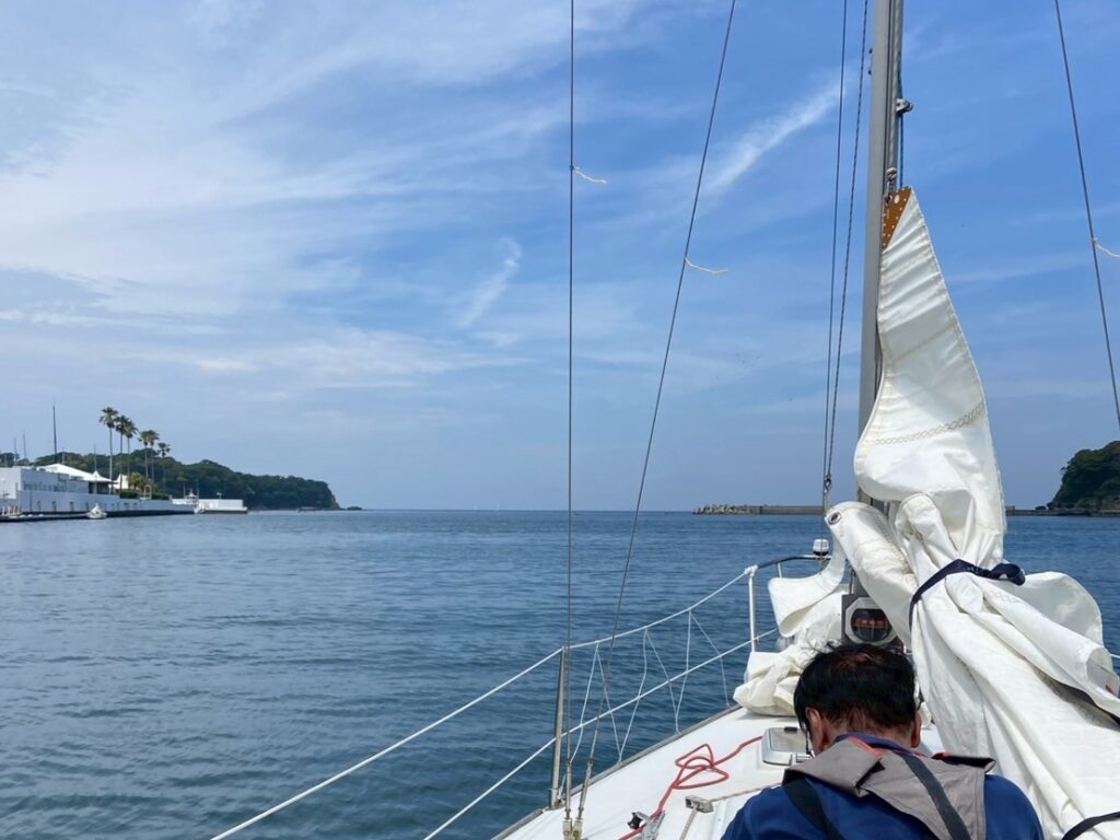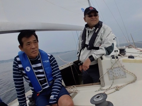 風が次第に強まる予報のため13時半に帰港、それから昼食と計画。スキッパー中尾さん。ティラー3人で練習。メインシートトリマーはブラインド2人で交代で練習。風は強すぎず気持ちの良い風。南寄りの風だが波はなかった。