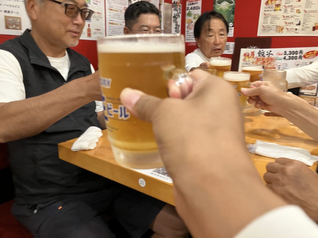 とにかく、門前仲町と木場にチェーン店の24時間営業の中華料理店を発見したので、福島さんのお車に、堀江さん、賀来さん島津さん、小倉さん、ブリスちゃん、そえださん、とのがいちを乗せていただき、モンナカではなく、キバのほう、つまりアウターマークではなく本部艇のほうのお店へアビームでいきました。玉木さんはお近くなので徒歩。