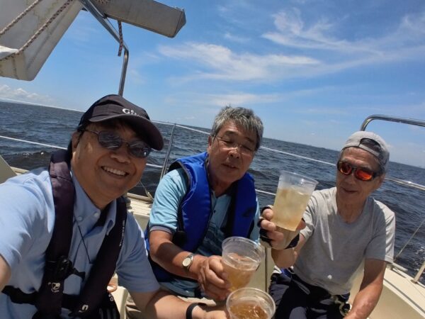 安定した3~4mの風の中、波を切る音を聞きながら、のんびりと湖内周遊の帆走を楽しむことができました。
