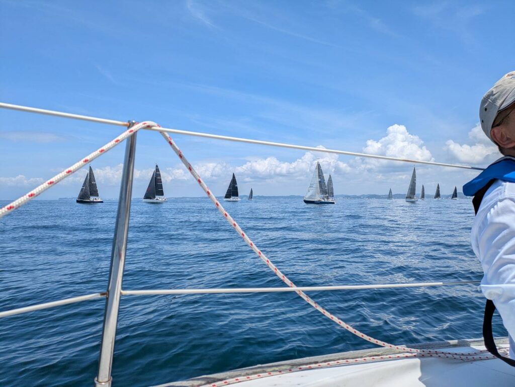 往路はスタート後にしばらくしてポートに返してそのまま一本コース、江ノ島沖マークでタックして、復路はスピンのリーチングで一本コースと走り比べのレースでした。