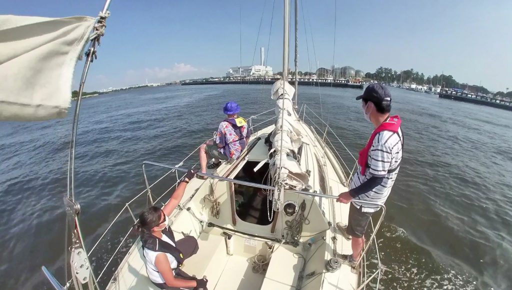 クローズ時にメインを引き込んで、セール上部がパタパタした時には、少しメインを引いてトラベラーを出し調整することなども学んだ。