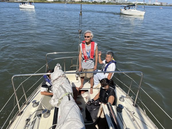 私たちは6?7回タクトし、戻ったときに4?5回ジャイブしました。 飯塚氏は風に合わせてコースを維持することで改善し、猿渡氏は口頭での指示にとても親切でした。