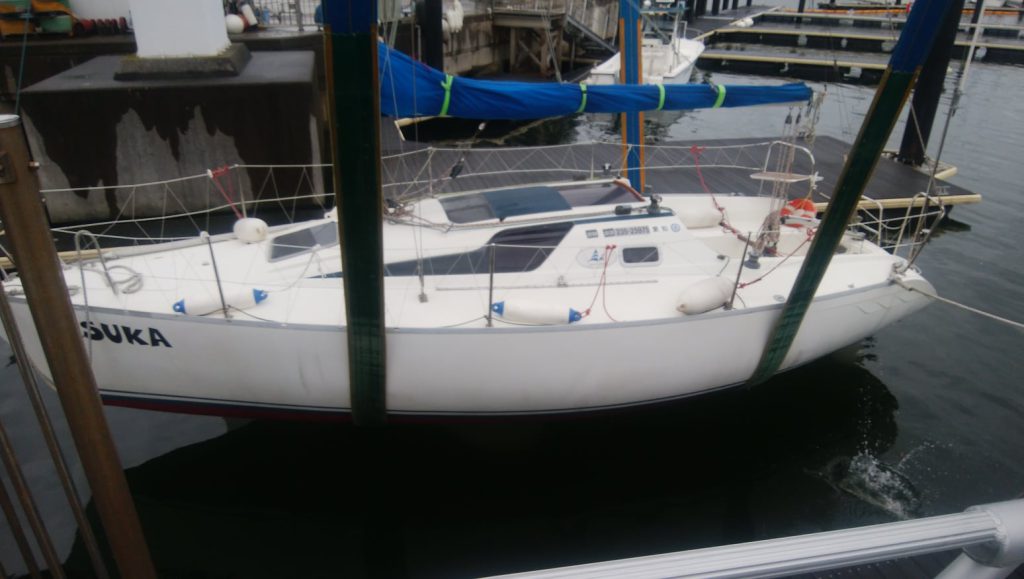 - 作業内容→船底塗装の半分、ペラのコーティング剤塗布、ハルの水垢取り、係留ロープの貝除去