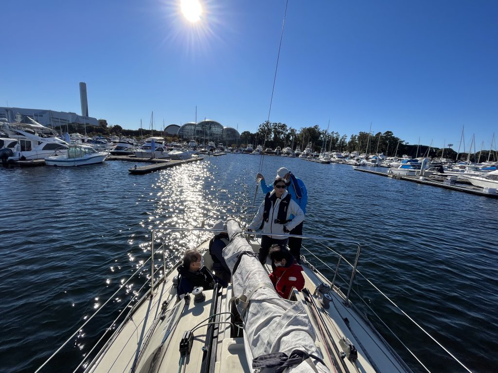 マリーナからの出港は、副田さんが担当。なぜかまた、後ろに下がりながら出て方向転換。