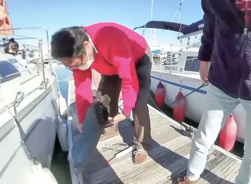 ◆とのがいちさんは、ライフジャケットを干したり、ボートフックを使ってマットをはたいたりしてくださいました。