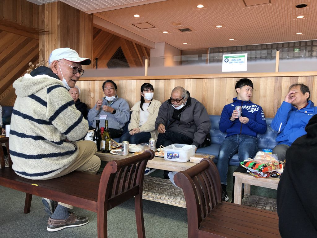 懇親会をやっていると、次から次に他のヨットの方もいらっしゃり、さらに賑やかになってきました。私は初めましての方ばかりで緊張していましたが、皆さんが気さくに話しかけてくださり、とても楽しいひとときでした。ヨットはチームワークが大切だと言うのは前回からいろいろな方に教えていただきましたが、違う船の方ともこれほど交流があるのは驚きでした。帰りの電車で副田さんから「ヨットが違えば、揺れやスピードなどの感じ方や操作の方法も変わってくる」と教えていただいたので、これからあほうどりには沢山乗りたいですが、機会があれば他のヨットにも載せて頂きたいと思いました。