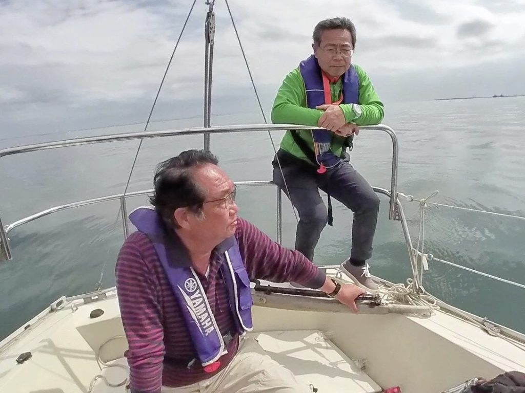 風がないということは予報で知っていましたが、こんなにも風がないのは久しぶりです。メインもジブも出しましたが、とにかく無風。