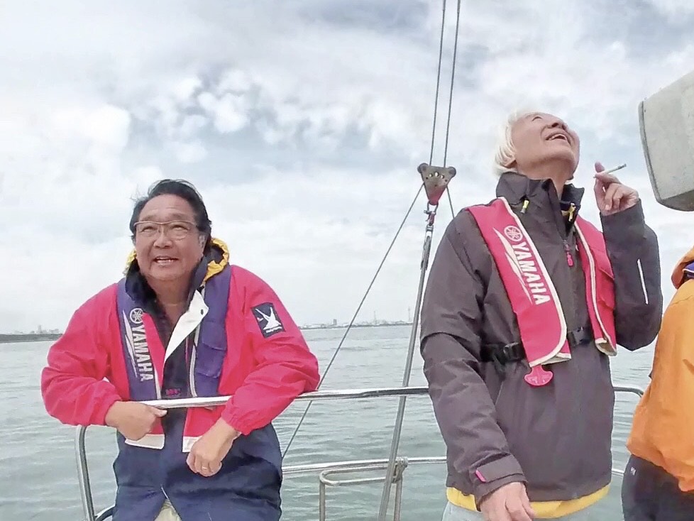 東京湾の真ん中で練習諦めのがっかり気分でしたが、それを払拭するような気合の入った「乾杯」の声に気分は一転。