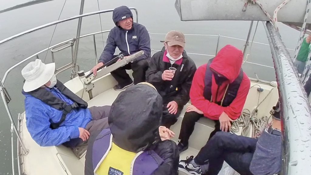 天気用法通り、昼過ぎからは雨が落ち始めたため、エンジンをかけて帰路についた。残念ながらMさんは、途中から船酔いに悩まされて沈黙気味。これに懲りず、入会してくれることを期待したい。
