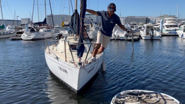 ポンツーンエリアまで曳航してもらい、あとは惰性で着岸ということで、そえださんはバウのもやいを、私はスタンのもやいをもって、いつでもポンツーンに飛び降りられるように準備していたが、なんとマリーナの人が何人か来てくださっていて、大丈夫ですかと声をかけ、もやいをとってくださった。