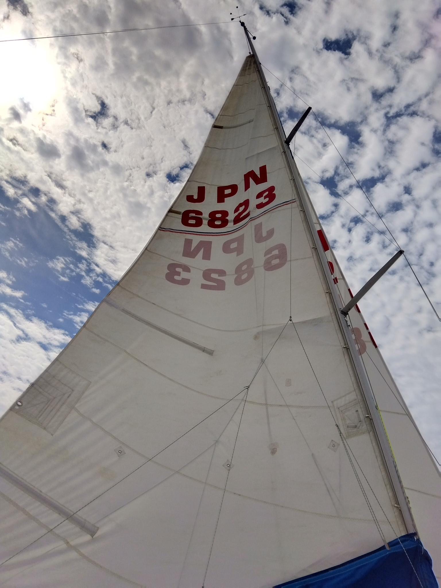 午前は柳川さんのコンパス方位読み上げに合わせ、山田さん、森崎の順にティラーを操作しました。そしてジブセイルを下して、柳川さんの操船のもと、いつものようにみんなが持ち寄った食べ物をシェアしながらのランチタイム。