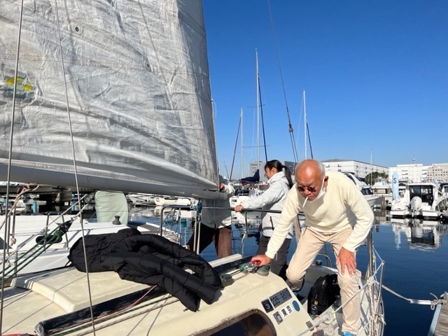 まず、古庄さんが2回練習。その後、そえださんが練習。私は、離岸時は最後までポンツーンに残りあほうどりをガイドし、着岸時は最初に降りてサポートする。今年はほとんどこの役割だった。バウロープやスプリングをクリートしてくれる新人会員が増えてくれたおかげで、私の役割も変わった一年だった。