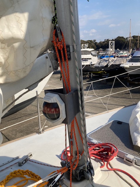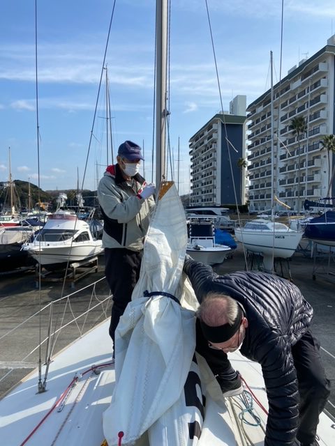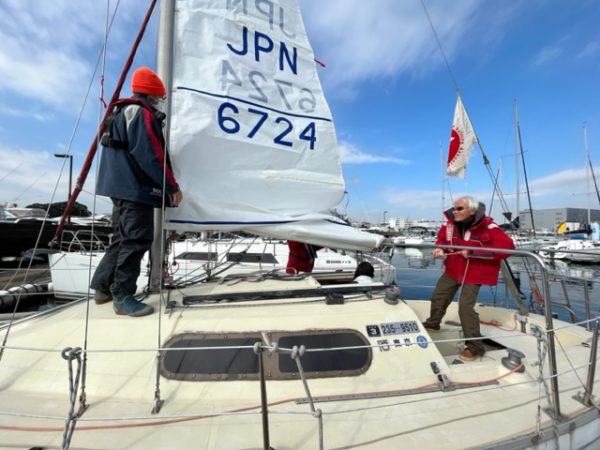飯塚さんがジブ関連一式の艤装、解装を行う。艤装後のダブルチェックでは何の問題もなく、手直しなし。