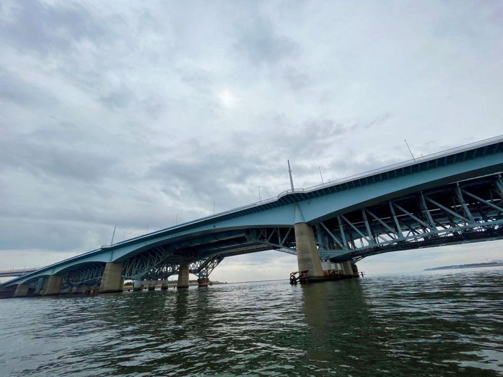 懐かしい顔ぶれと夢の島の水門を10時11分に越えて、橋をくぐり右に若洲を左に葛西臨海公園を眺めながらメインセールアップは、懐かしさと嬉しさとの何とも言えない感情を与えてくれた。
