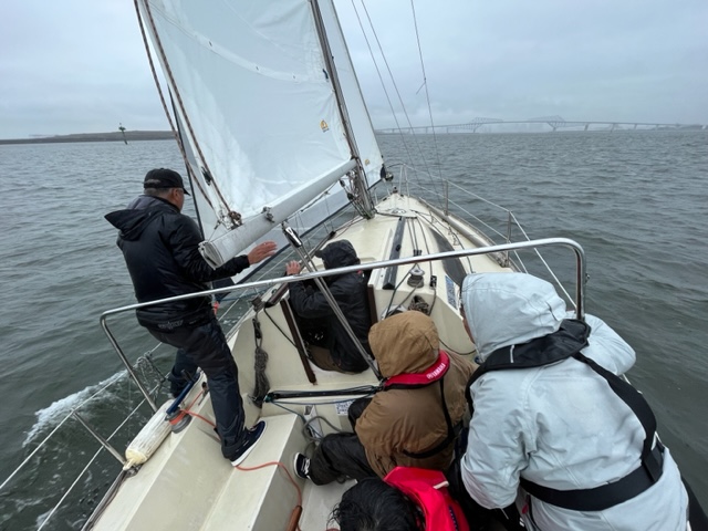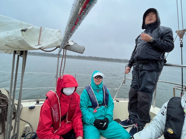 でも今、写真を確認したら、セールを上げる前までは、コックピットにいらっしゃることが判明。セールをあげた後の写真には、内村先生は写っていませんでした(笑)