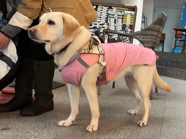 金子さんの新しい盲導犬ナイアくん(左)、小倉さんの盲導犬ブリスちゃん(右)。