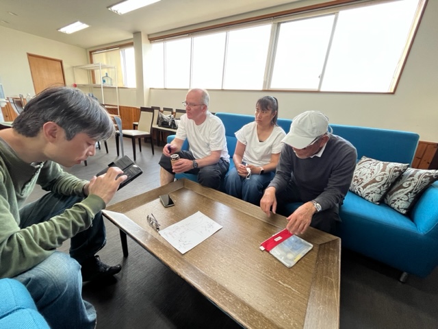 16時ぐらいに片付けが終了し、マリンルームで秋山さんがレースの基本を紙に書いて指導。水田さんはスマホで拡大しながら一生懸命学ぼうとしており素晴らしい。私はこの様子を録画していたが、残念ながら紙面は見えないが、貴重な時間を過ごせた。