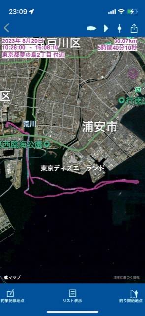 ここまで、全くセーリングのようすが記されていないのだが、実際記すことがあまりない。添付した航跡マップをご覧いただけるかたは一目瞭然と思うが、単にエル字がたの航路。南下して若洲沖でメインとジブをあげ、東へだらだらと進み、Uターンして帰ってきた。