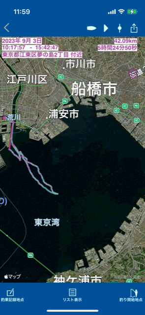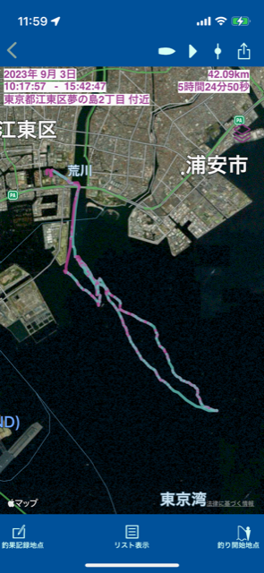 【航行時間】10時17分出港15時42分帰港(5時間25分)