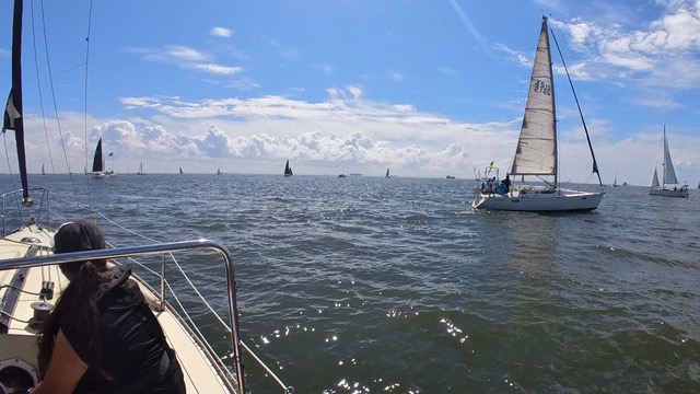私の数少ないレース経験で、実は何もしないで乗っていたのは初めて。ゆっくり周りを見渡し、客観的に観察することができた。ちょっと語弊があるかもしれないが、接近してくるヨットが、自信がなさそうな様子などがよくわかった。あほうどりの完璧なコースに割り込もうとすることは難しい。さすが軍師堀江さん。
