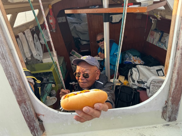 フォアステイの問題がひと段落してからは、JBSA名物、谷下田さんのホットドッグをドッグハウスで作成。