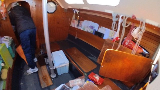 ・スタボー側からキャビン内部に雨漏り。クッションが1枚びしょびしょ。次回雨漏り箇所を特定して対策必要。