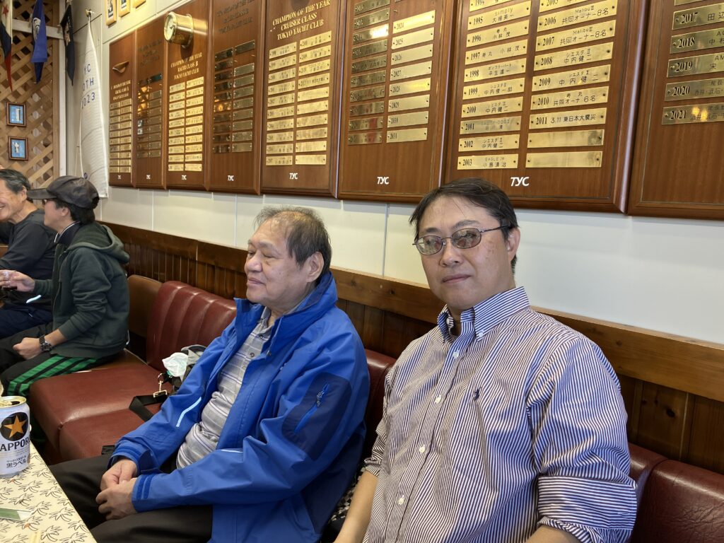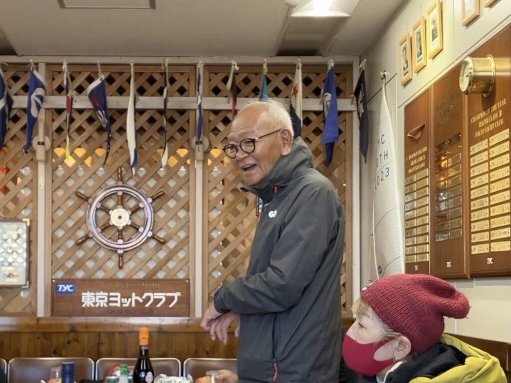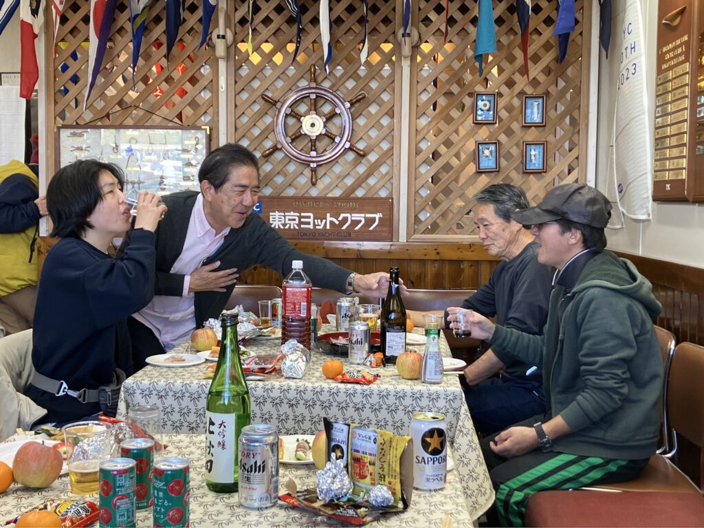 私は、夢の島マリーナへ通って8年目で初めて入った。バーカウンター、壁に貼られた金色のネームプレート、皆大満足で、来年はTYCの会員になろうという話になった。ちなみに、皆勤賞をいただいたTYCレースには、非会員として参加させていただいていた。
