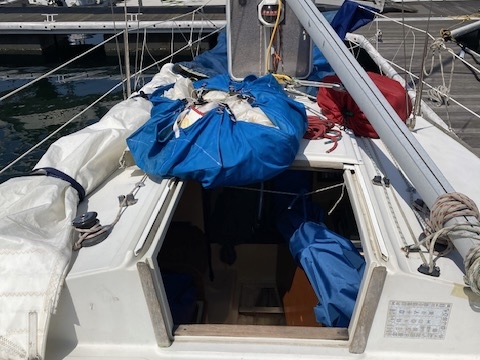 ルミナスは一晩バースにいて、全員が到着する前に、アランとアンドリューが午前 9 時 15 分に到着し、湿った室内から帆を取り出し、内部の空気を循環させ、また、前日に使用したラジオの電池も交換しました。 前の雨のせいで濡れていました。