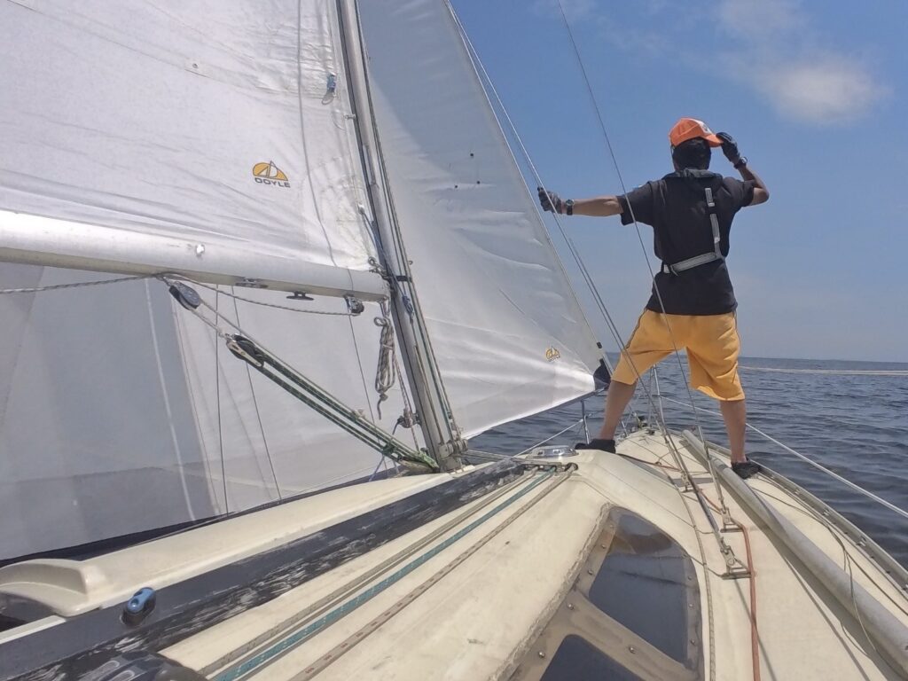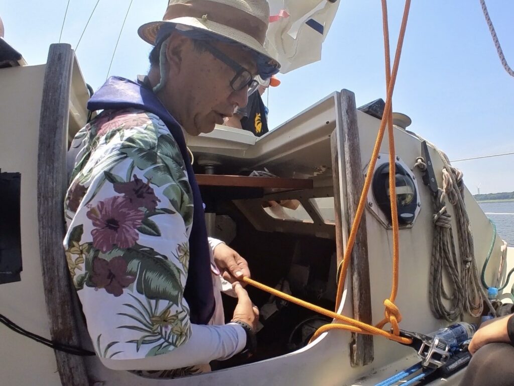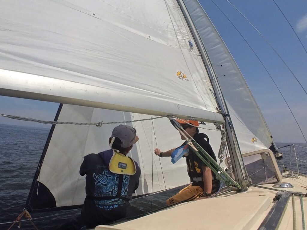 今回の体験者さんは高校生で、船に結構強く、まったく船酔いする様子もなかったため、ついつい、自分たちがしたいことをしてしまい、申し訳なく思っている。ただ、その日の夜、体験者さんと保護者のかたと、それぞれメールでご挨拶をさせていただいたところでは、船酔いはつらかったものの、今後も参加をされたいというご希望があるようで、嬉しい限り。最初からあれを経験して、まだヨットに乗りたいと思う人は、今後におおいにセーリングを楽しんでもらえるようになるのではないかと思う。