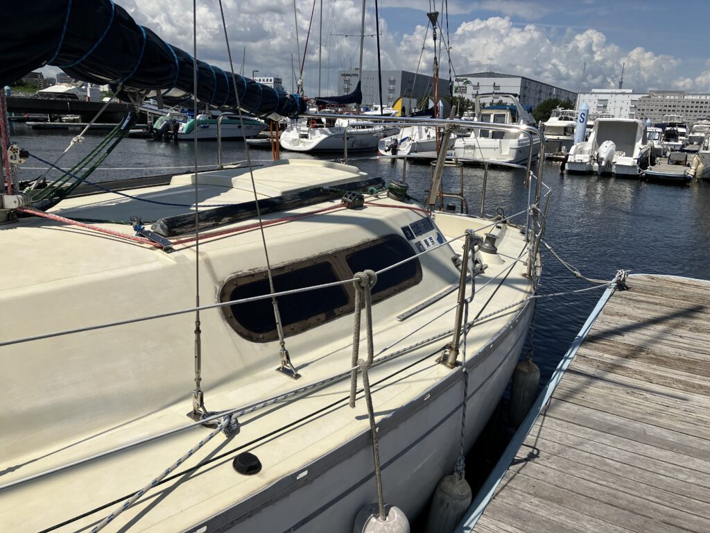 前回一緒に台風対策をした玉木さんは、お一人でフェンダーチェックとメインセールをぐるぐる巻きに。